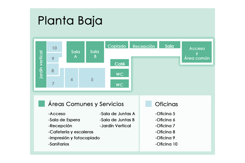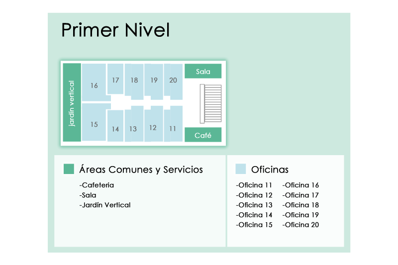Nuestro inmueble tiene oficinas distribuídas en tres niveles, que van desde los 6 metros cuadrados hasta los 20 metros cuadrados, en dos configuraciones adaptadas a sus necesidades la primera de ellas es para el uso personal, mientras tanto en la segunda generamos un área de trabajo para capacidad de 3 a 8 personas por oficina. Recuerda que Círculo es tu mejor opción para oficinas en renta en la Ciudad de México